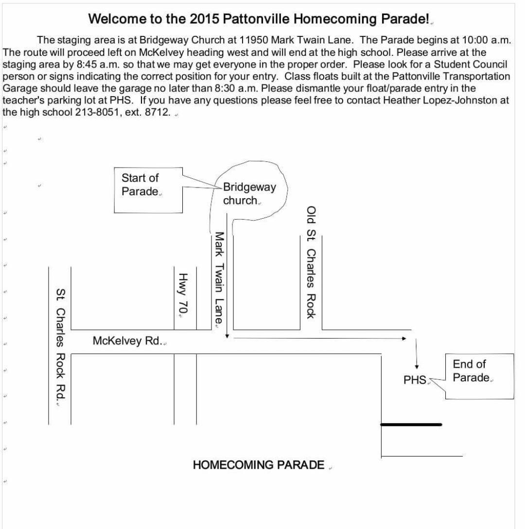 If you will be a parade spectator, it begins at 10 am at Mark Twain Lane & McKelvey Road.